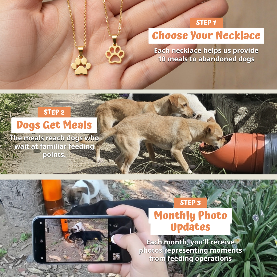Each item helps us provide 10 meals to abandoned dogs. It's simple. It's real. And it's already working.